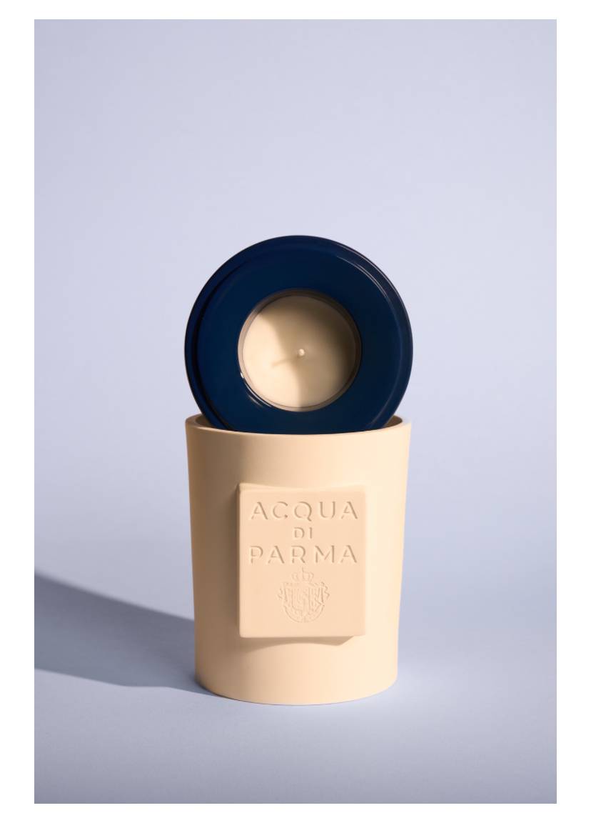 Hand-poured wax arrives in three radiant hues — yellow for Luce di Colonia, orange for Buongiorno, and blue for Mirto di Panarea. Each colour becomes part of the ritual: scent as atmosphere, object as art.